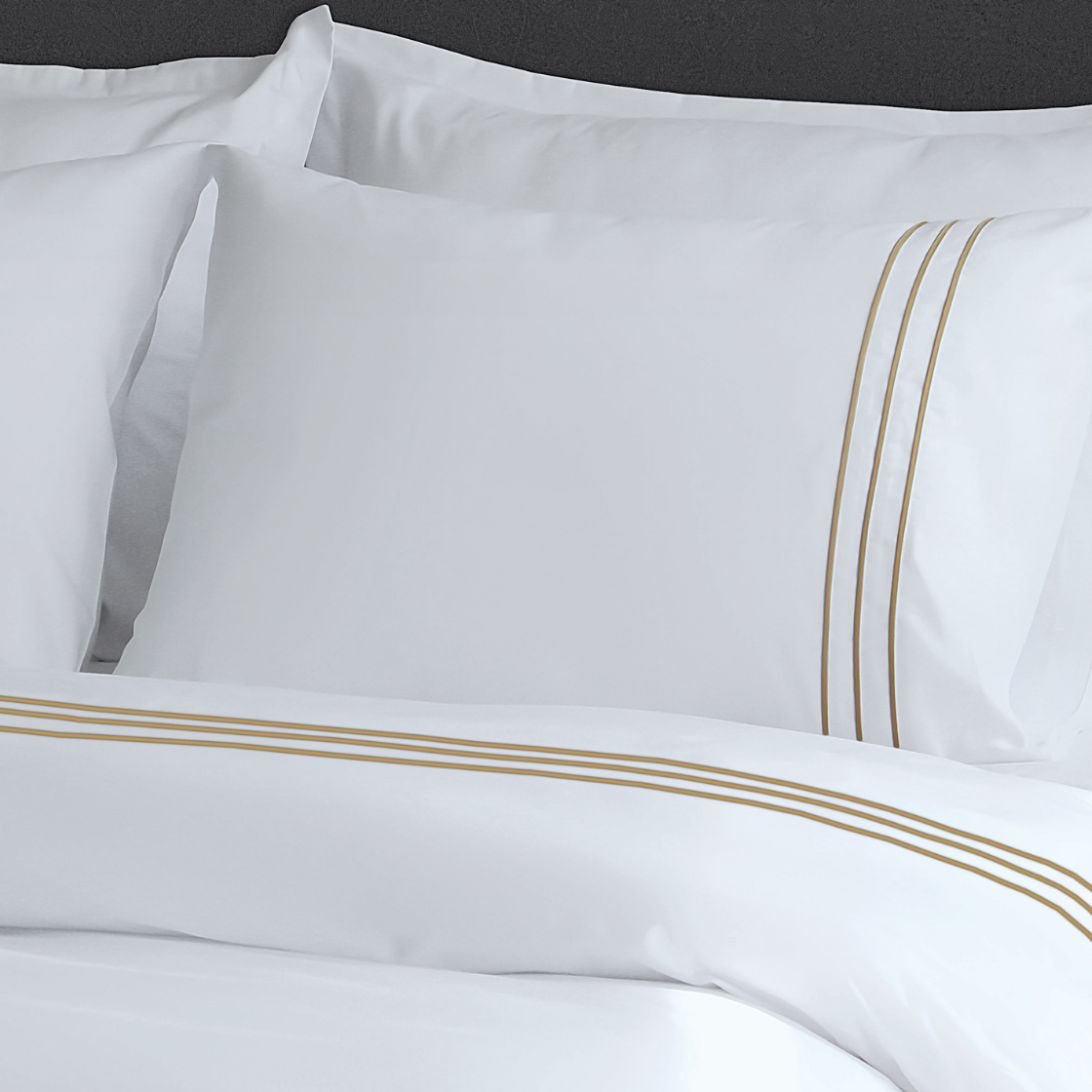 Elevate your bedding with a touch of distinction. The elegant piping detail frames the pillows and duvet covers, creating a bespoke, architectural look that signals high attention to detail and superior luxury.