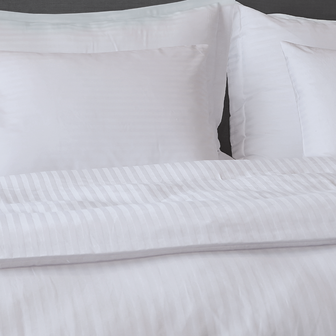 Our signature striped collection adds visual depth and a dynamic sheen to the guestroom. Beyond its elegant look, the stripe structure helps conceal minor creases, ensuring the bed always looks pristine and inviting.